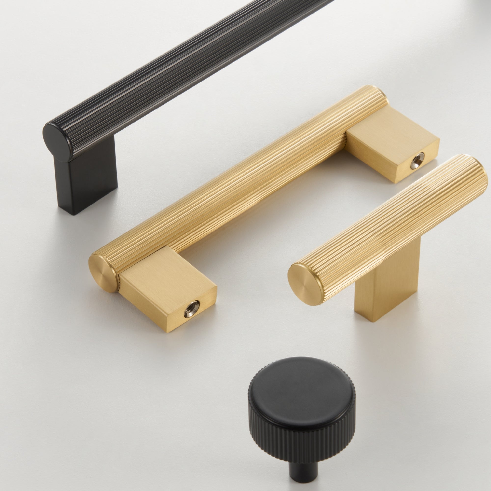 Verleihen Sie Ihren Möbeln oder Küchenschränken einen eleganten und modernen Touch mit diesem stilvollen Griff aus massivem Messing. Diese T-bar hat eine gerändelte Oberfläche, die sowohl guten Halt bietet als auch dem Raum Charakter verleiht. Der Griff ist ideal für alle, die ein zeitloses Design mit einem Hauch von Exklusivität wünschen.